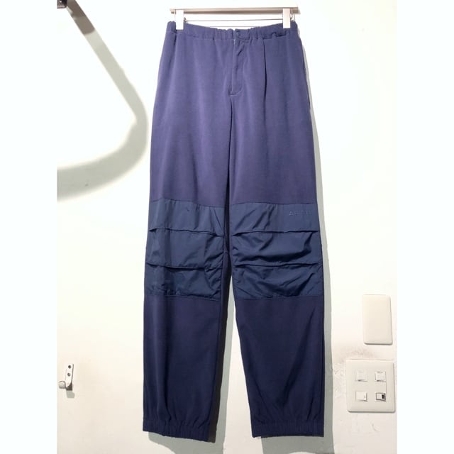 薄手のフリース素材に膝やお尻部分がナイロン生地に切り替えられた細身パンツ
