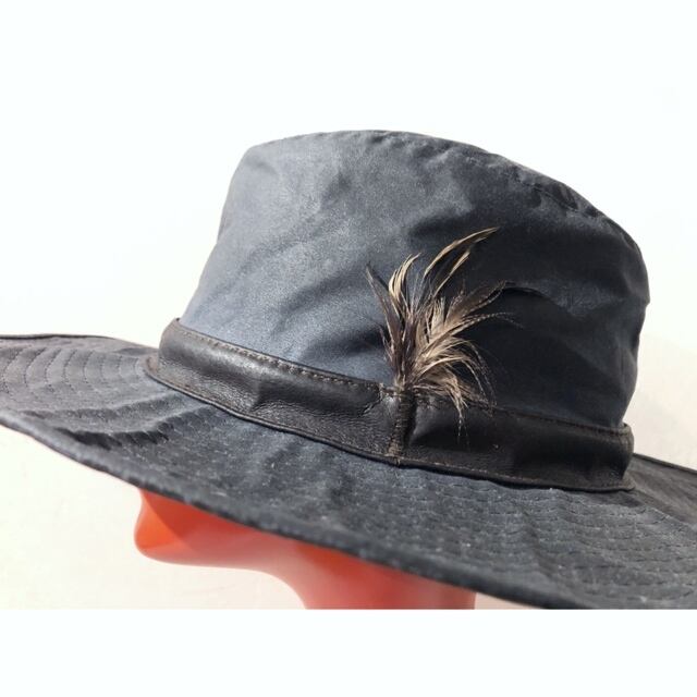英国製 Barbour バブアー オイルド ロングブリム ハット 60㎝ ネイビー