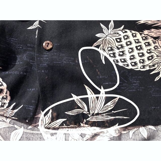 HAWAII製 TWO PALMS ブラックレーヨンアロハシャツM