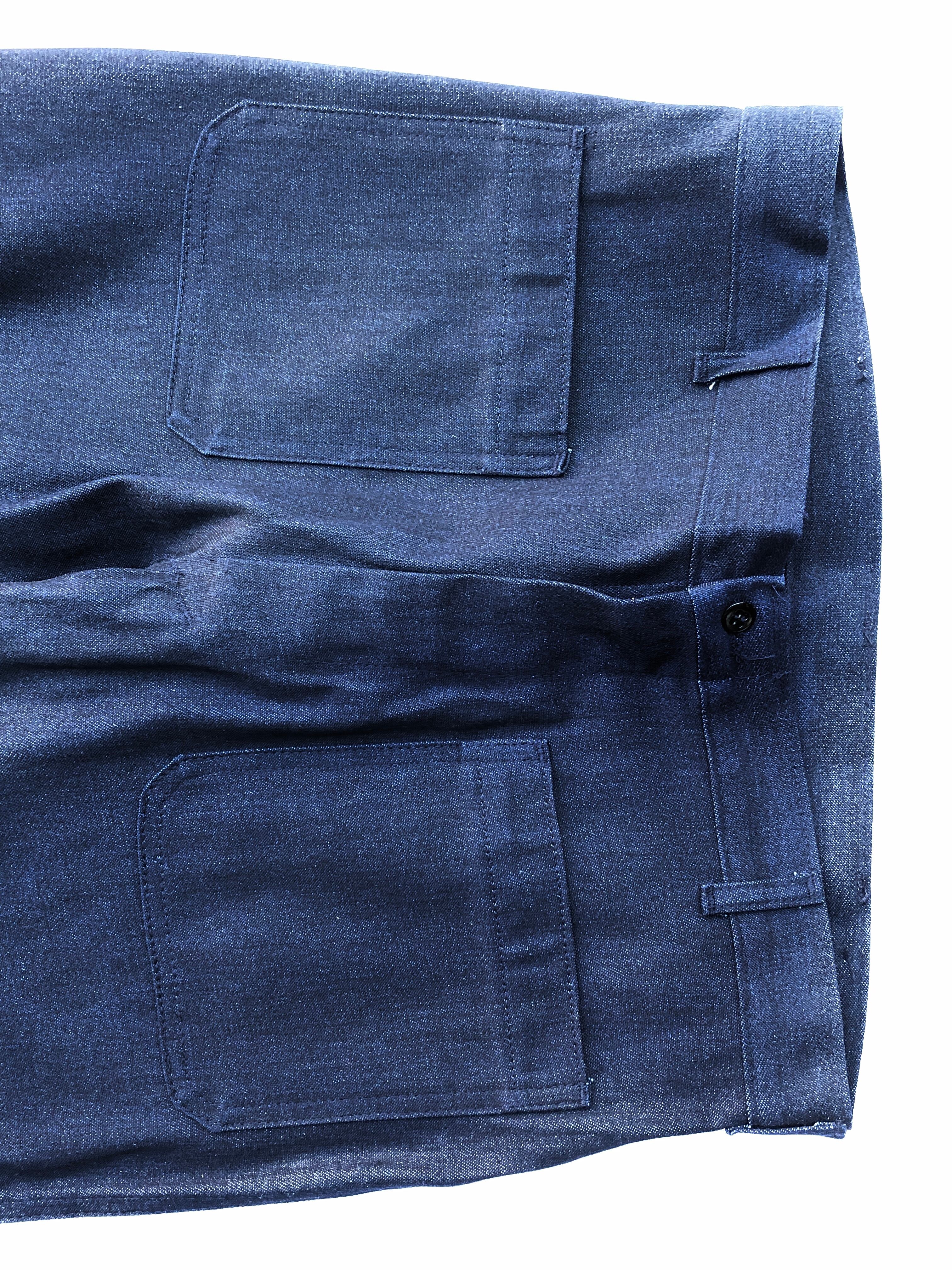デッドストックの未使用品、ノリが付いたパリパリの状態、素材はデニムとなっています。